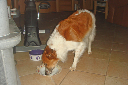 Doch ich will nicht zu viel meckern, schließlich sind mit Duschka nun vier Malzeiten eingeführt worden. Auch fällt für mich öfters was Leckeres als Belohnung ab, wenn Duschka irgendwelche Kommandos übt. Das finde ich einfach nur super. Und ein zweiter Futternapf ist mit Duschka auch eingezogen. Leider lassen mich meine Zweibeiner nicht an ihn ran. Wirklich schade. Na ja, außer sie passen nicht auf, dann schlecke ich noch den Rest auf. Doch Duschka lässt in der Regel nichts übrig.